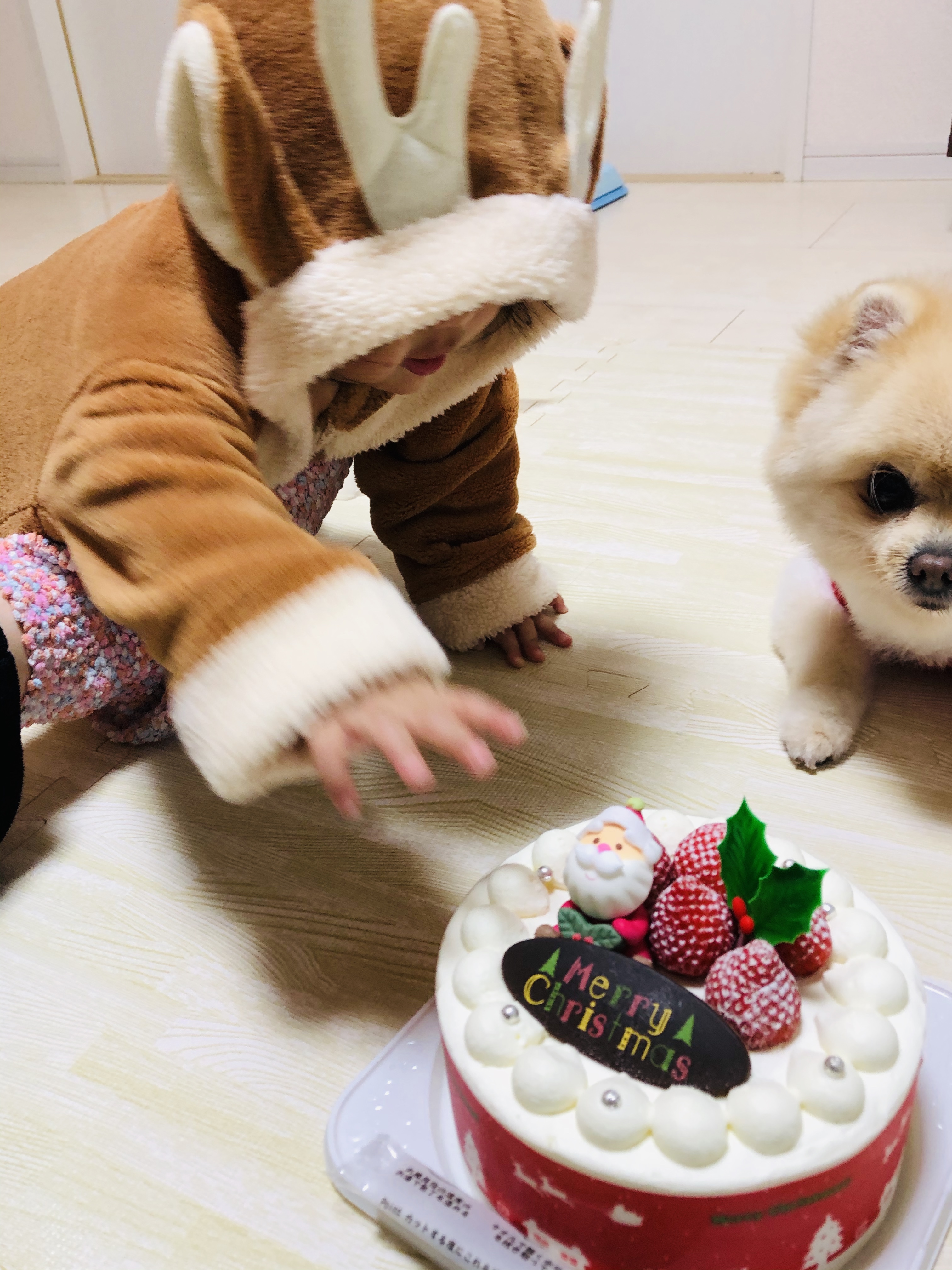 この後、トナカイがケーキをわしづかみにしようとしたところを全力で阻止しました笑